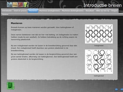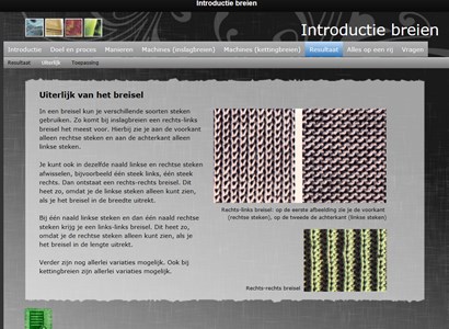 In deze module worden de verschillende industriële breitechnieken besproken, denk aan vlakbreien en rondbreien. De toegepaste steken en de effecten daarvan op het geproduceerde breisel komen ook aan de orde. Het is een introductiemodule, dus om de module te kunnen volgen is geen voorkennis nodig.